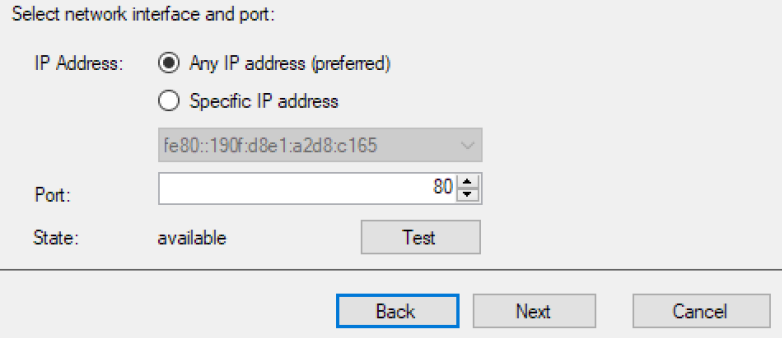 The installer can be used to separately specify any IP address. If the PC on which the ibaCMC service is operated is connected to multiple networks, you can specify here the IP address to be used to access ibaCMC.