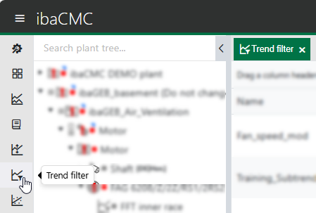 After definition, the trend filter can be assigned to one or more components/sensors. After assignment of the trend filter, the trends for the components/sensors have multiple filtered trends in the trend analysis.