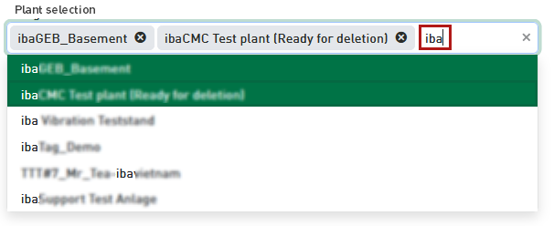 All drop-down menus with multi-selection support the search feature. If you enter a search string, then only items containing this string are available for selection.