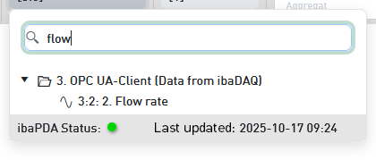 A selection window opens, where all configured ibaPDA signals are listed. They are listed in the same manner like in the I/O Manger signal tree of ibaPDA.
