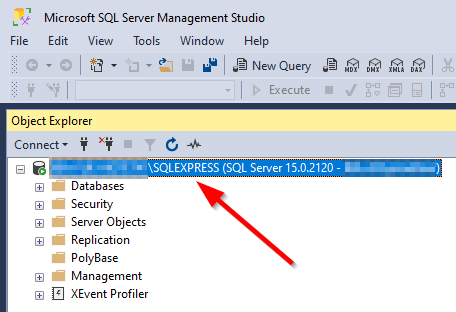Falls der Servername nicht bekannt ist, können Sie diesen über das SQL-Management-Studio einsehen.