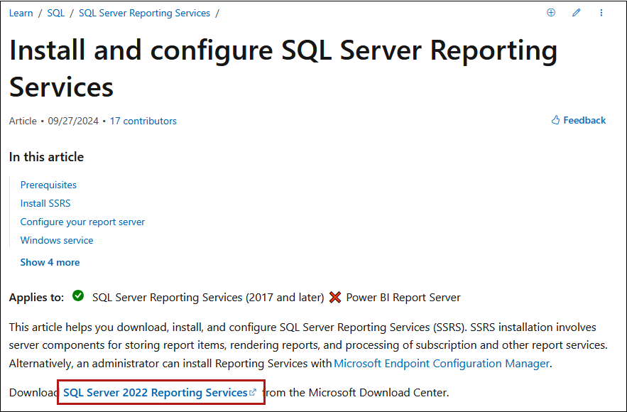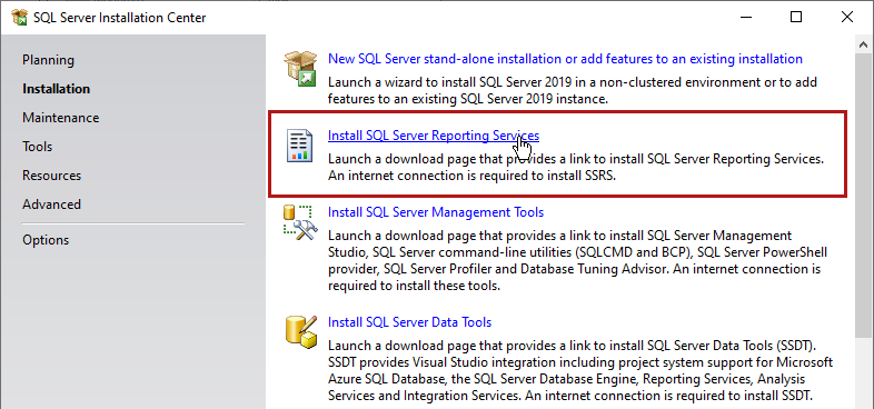 Select Installation in the navigation menu and click on Install SQL Server Reporting Services.