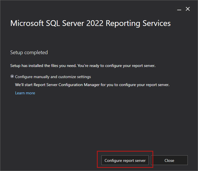Click on <Configure report server> and the Report Server Configuration Manager will open. Alternatively, you can open the Report Server Configuration Manager over the Windows start menu.