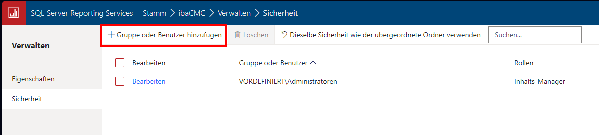Wählen Sie im Bereich Sicherheit im Menü +Gruppe oder Benutzer hinzufügen.