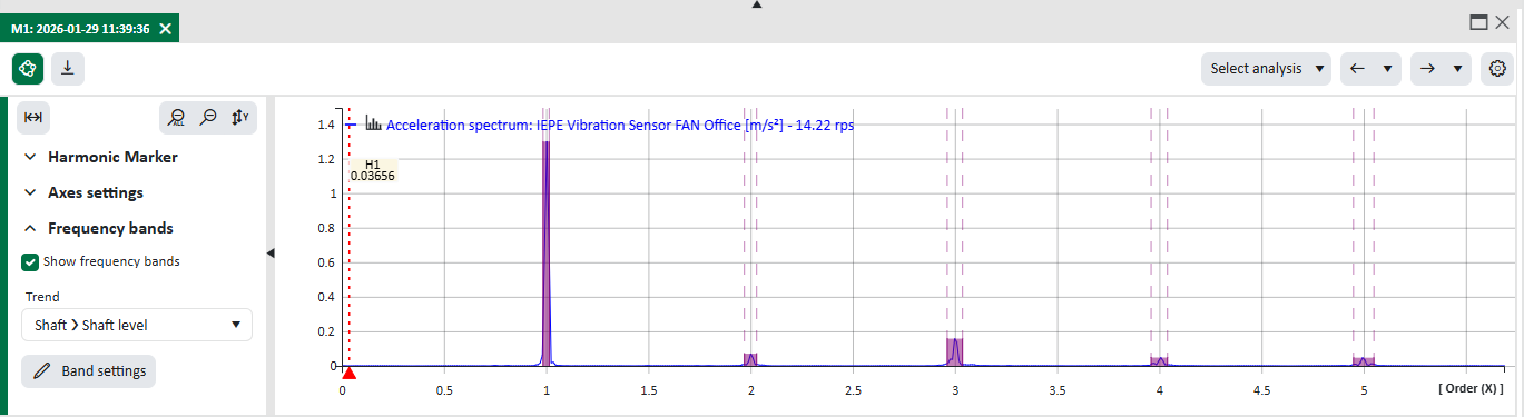 The frequency bands defined for the trend are drawn as dotted lines. The range inside the bands will be filled with color up to the measured value.