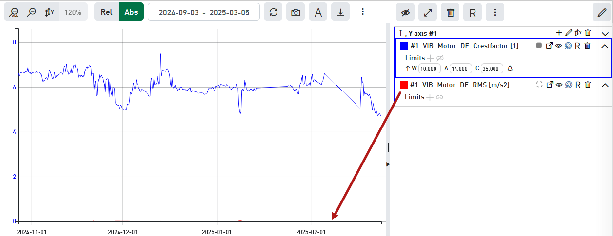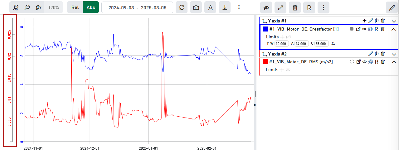 Therefore, it is possible to define multiple Y-axes in the absolute view, in order to provide for each signal a scale that fits for an optimal representation.