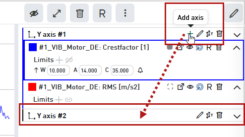 Below the last signal there appears a new line for a second Y-axis (#2).