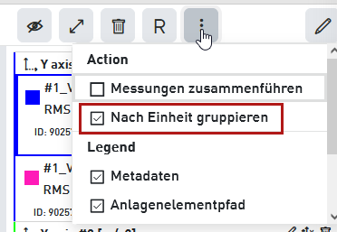 Um die Gruppierung zu aktivieren, klicken Sie auf das Drei-Punkte-Menü in der Legende der Trendanalyse und wählen Nach Einheit gruppieren.