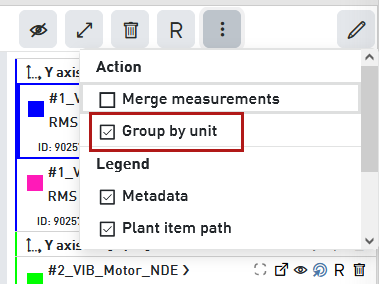 In order to enable the grouping, click on the three-dot-menu in the legend of the trend analysis and select Group by unit.