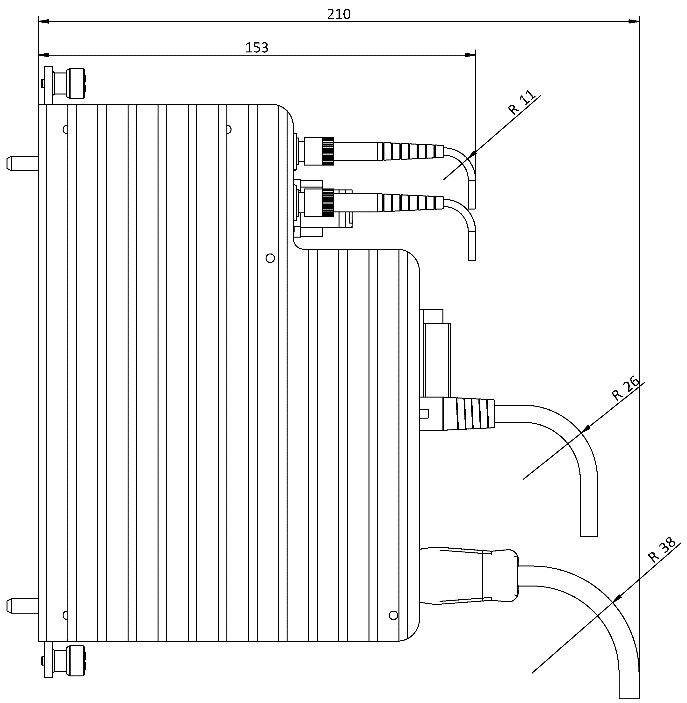 with cables (dimensions in mm)