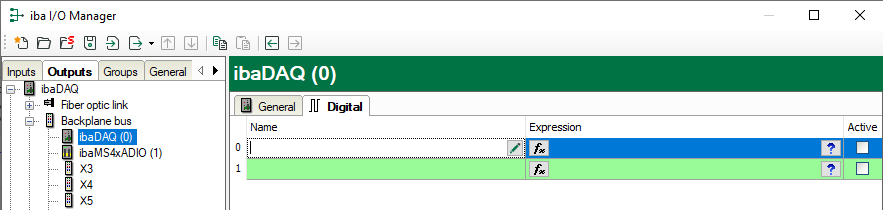 Select the Outputs tab to define settings for the output signals. The following parameters can be set on the Digital tab: