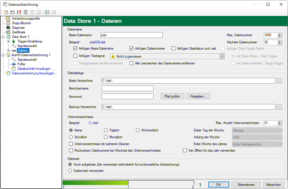 Um auf die aufgezeichneten Daten komfortabel über das Netzwerk zugreifen zu können, bietet der ibaPDA-Client die Möglichkeit, eine schreibgeschützte Freigabe einzurichten.