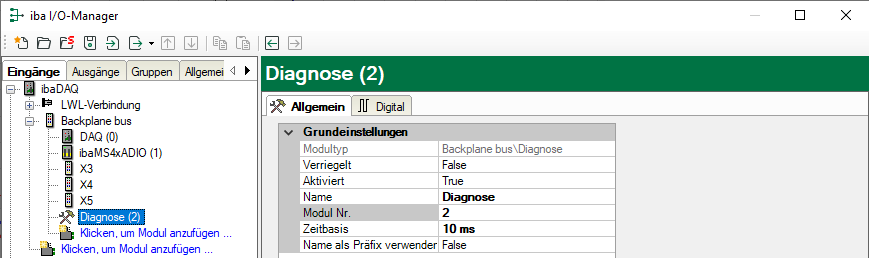Im Register Allgemein nehmen Sie die Grundeinstellungen für das Diagnosemodul vor.