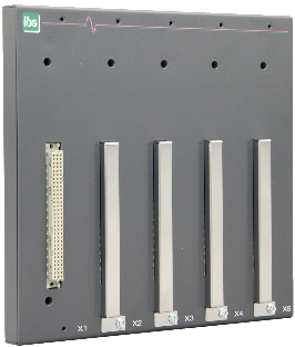 Backplane panel for mounting 1 central unit and up to 4 I/O modules.