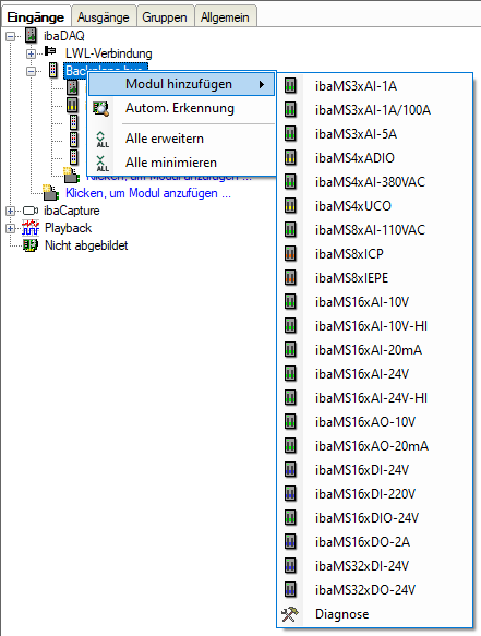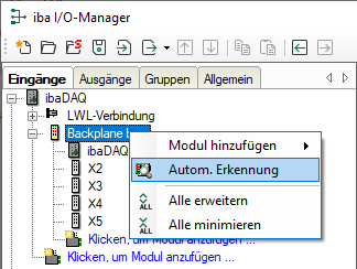 Die angeschlossenen Module werden automatisch erkannt und im Signalbaum angezeigt.