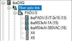 If an ibaPDA system is configured as a slave, it can use the autodetect function to load the configuration of the devices from the ibaPDA master. A slave ibaPDA cannot change the device configuration. The slave ibaPDA shows the link and its modules in the signal tree with lock symbols.