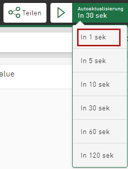 Das Intervall für die automatische Aktualisierung eines Dashboards kann jetzt auf 1 Sekunde eingestellt werden, siehe Dashboard automatisch aktualisieren.