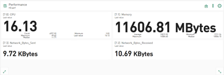 Die Kachel für die Werteanzeige zeigt standardmäßig den letzten Wert des ausgewählten Signals oder Spaltenwerts an. In jeder Zelle der Werteanzeige können neben diesem Wert nun weitere statistische Angaben für numerische Werte wie Maximum, Minimum, Standardabweichung oder Median angezeigt werden. Die ausgewählten Zusatzwerte werden unterhalb des Hauptwertes angezeigt. Die Größe des angezeigten Hauptwertes wird so angepasst, dass er in die Wertezelle passt.