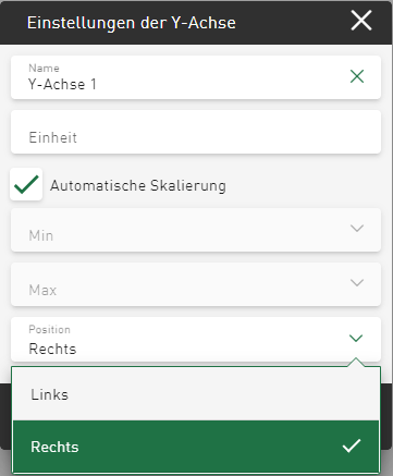 Die Achseneinstellungen der Liniendiagrammkachel bieten nun die Möglichkeit, die Y-Achse auf der rechten Seite darzustellen.