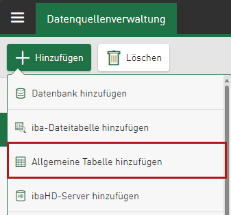 Tippen Sie auf <Hinzufügen> – <Allgemeine Tabelle hinzufügen>.
