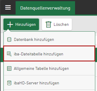 Tippen Sie auf <Hinzufügen> – <iba-Dateitabelle hinzufügen>.