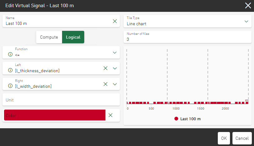 In the preview area, the currently determined result for the virtual signal is displayed in accordance with the current datasource and the selected functions. The virtual signal is displayed in a line chart as a default view.