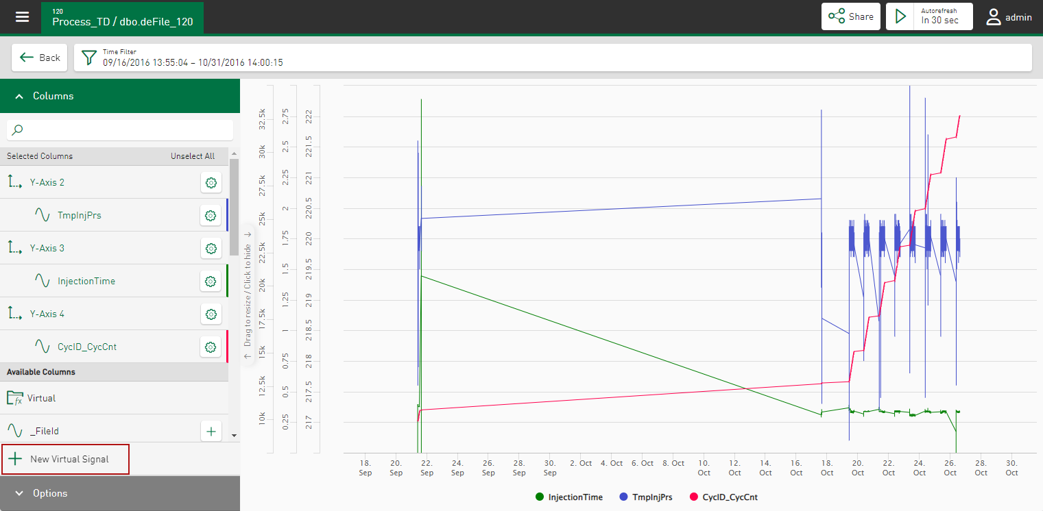 You can edit or delete virtual signals using the <fx> button. You can use virtual signals in the same way as signals from the datasource for automatic scaling of the Y-axis.