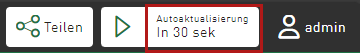 Mit der Funktion Autoaktualisierung können Sie die Daten auf dem Dashboard bzw. in den Kacheln in festgelegten Zeitabständen automatisch aktualisieren. Die Standard-Aktualisierungszeit ist auf 30 Sekunden festgelegt. Sie können kleinere und größere Intervalle zur Aktualisierung festlegen.