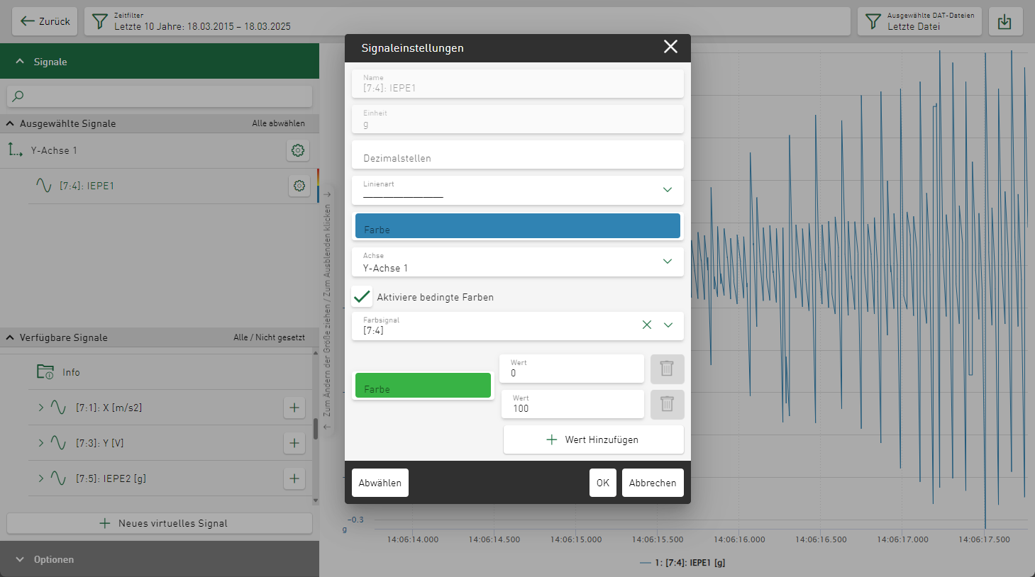 3. Wenn die bedingte Farbgebung durch ein anderes Signal bestimmt werden soll, wählen Sie dieses im Feld Farbsignal.