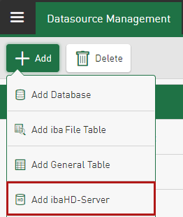 Proceed as follows to add the ibaHD-Server as a datasource: