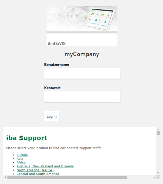 ibaDaVIS-Anmeldeseite