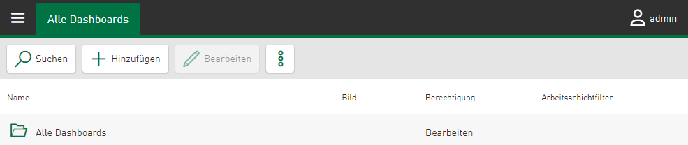Öffnet den jeweiligen Bearbeitungsdialog für den markierten Ordner oder das markierte Dashboard (grün hinterlegt).