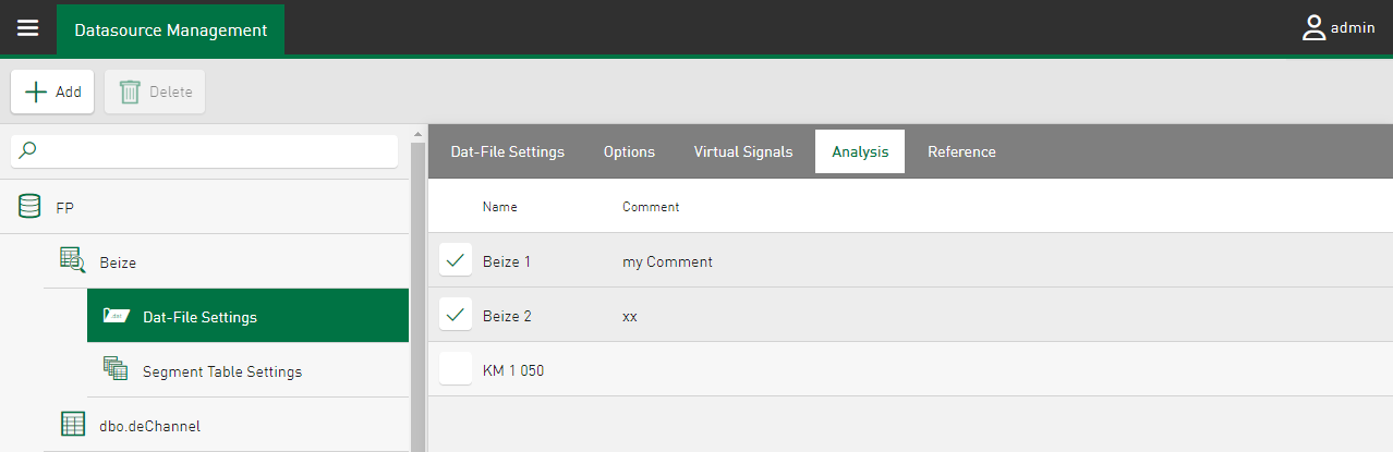 A configured analysis contains an analysis file (*.pdo). You can connect one or more configured analyses in the Analysis tab to the currently selected file table. DAT files or ibaHD data can then be downloaded together with an analysis and opened with ibaAnalyzer directly after the download.