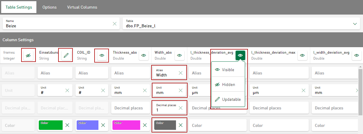 You have the following setting options in the table settings of iba File Tables and General Tables.