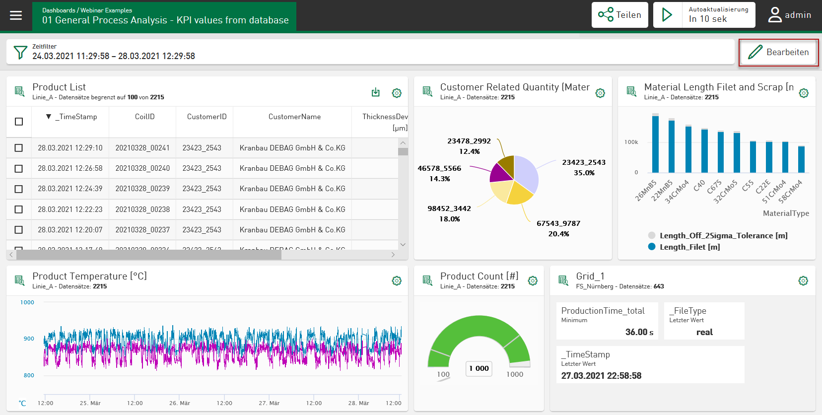 Öffnen Sie das Dashboard aus der Dashboard-Übersicht oder über das Hauptmenü.