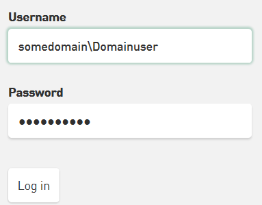 If you log in as a domain user, you do not have to enter the domain name in the User field. It is sufficient if you use the user name or e-mail address of a user.