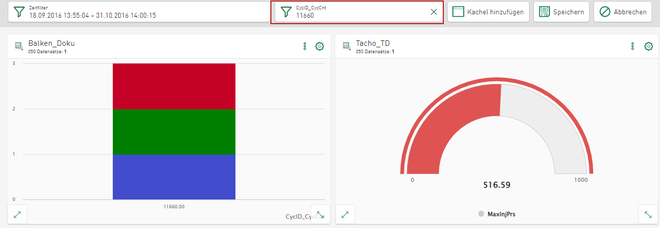 In Kacheln vom Typ Balkendiagramm können Sie über den Zeitbereich und den Balkenfilter filtern.