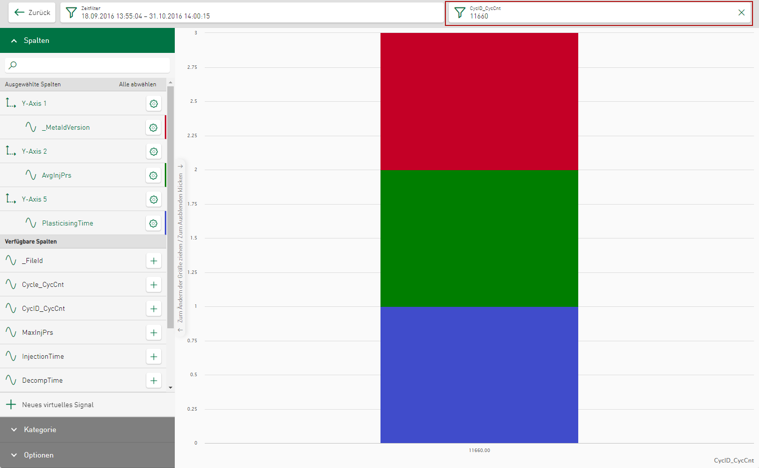 Die Darstellung ändert sich entsprechend, der gefilterte Bereich erscheint in einem Feld über der Anzeige.