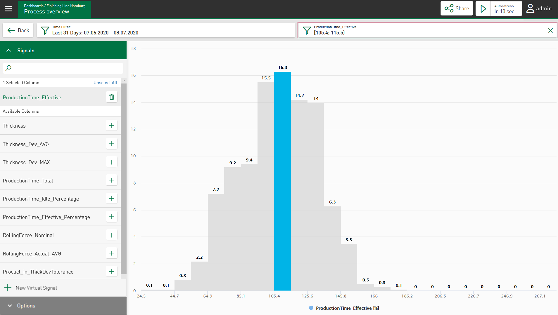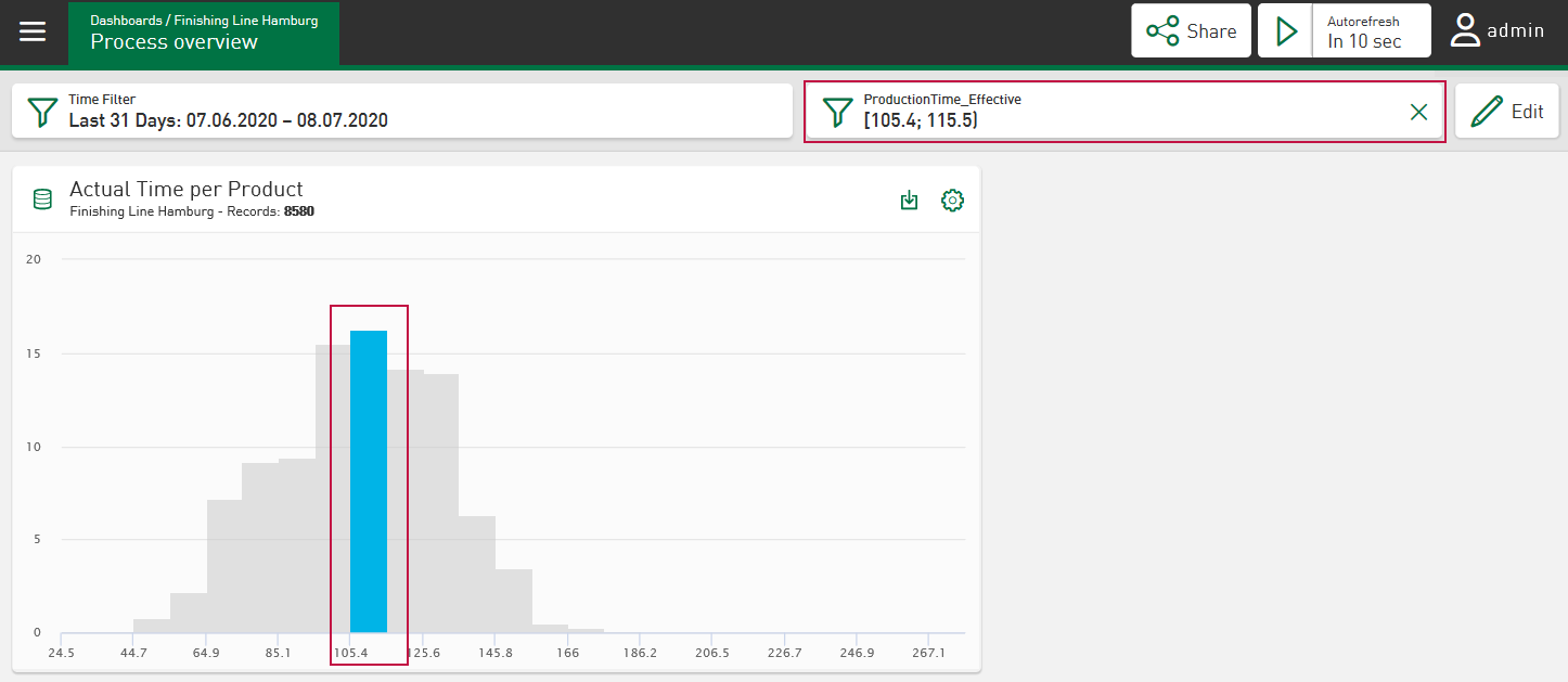 The Histogram then shows the filtered bars in color, the other bars are greyed out. A new field corresponding to the filter selection appears.
