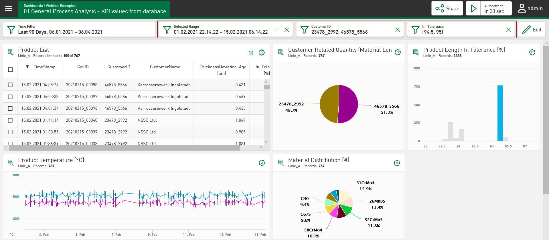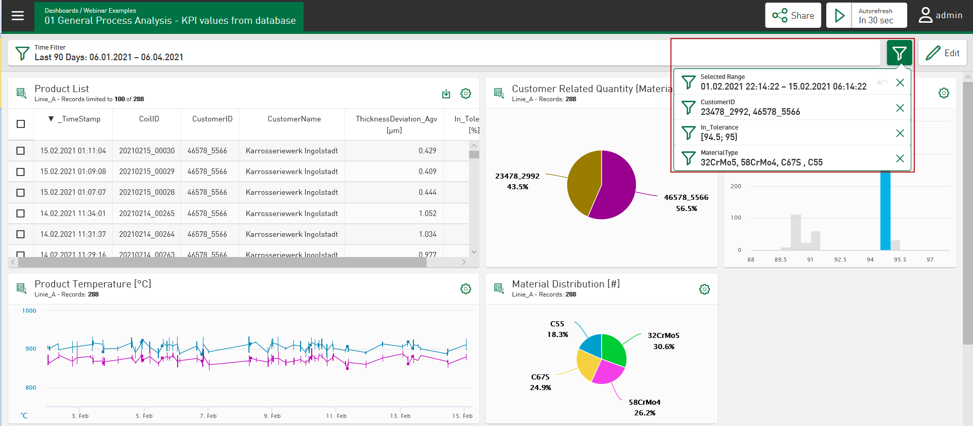 You can set several filters at the same time. All set filter options are applied simultaneously (AND-link) and shown in filter fields via the dashboard.