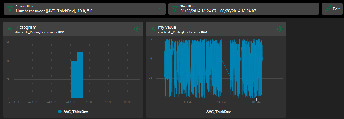 Add specific filters to the URL of the dashboard or tile and define filter parameters for time or value specifications. An overview of the supported filter functions and parameters can be found in chapter Supported filter functions and parameters for URL filters.