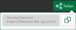 Ein Link zum aktuellen Dashboard mit den zugehörigen Filtereinstellungen wird erzeugt und als Text für die Übernahme in die Zwischenablage bereitgestellt.