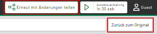 3. Um den überarbeiteten Dashboard-Status wieder zurückzuleiten oder mit anderen Nutzern zu teilen, tippen Sie auf <Erneut mit Änderungen teilen>.