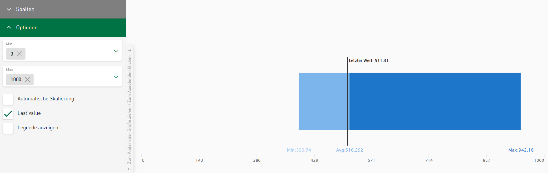 Im Abschnitt Spalten wählen Sie das Signal bzw. eine Wertereihe für die Anzeige aus. Sie können nur ein Signal/eine Wertereihe auswählen. Der Bereich ist standardmäßig von 0 bis 1000 eingestellt.