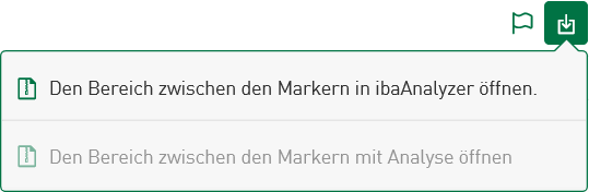 Wenn die Heatmap zeitbasierte HD-Daten visualisiert, können Sie über den Button Marker platzieren, die einen bestimmten Zeitbereich direkt in ibaAnalyzer öffnen. Wie beim Kacheltyp Liniendiagramm startet die Interaktion mit ibaAnalyzer über ein Kontextmenü, das Sie durch Tippen auf das Download-Symbol aktivieren. So können Sie sowohl eine Datei mit Verbindungsinformationen zu HD-Ablage und Zeitbereich als auch eine Analysedatei, die HD-Daten und die Analyse zusammen in ibaAnalyzer öffnet, in den Download einbinden. Weitere Informationen, siehe Marker in HD-Ablagen verwenden.