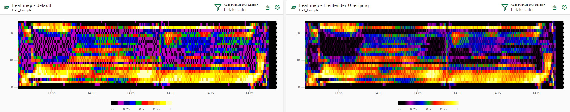 Select this option if you find the color transitions between value ranges too abrupt. When enabled, the color transitions occur in gradations due to an optical softening effect in the graphics. The following example shows the same values without (figure left) and with (figure right) smooth color transitions: