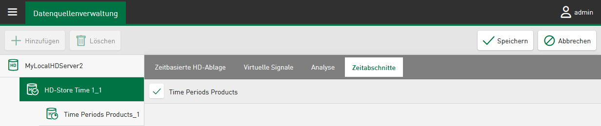 Die ausgewählten Time-Periods erscheinen im Datenquellenbaum unter der zeitbasierten HD-Ablage.