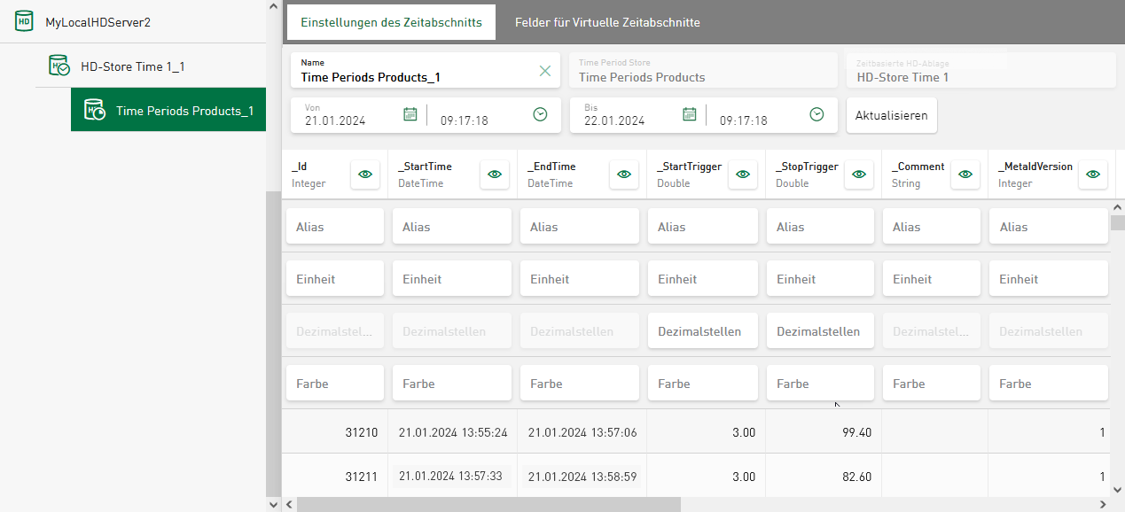 Für jede Time-Period wird die Start- und Endzeit und eine eindeutige Kennung gespeichert. Neben diesen Standardparametern können auch berechnete Werte oder Metadaten aus dem Produktionssystem gespeichert werden und die Informationen eines Zeitraums anreichern. Die Daten können Sie anschließend zur Filterung oder für jede Art von statistischer Prozessanalyse verwenden.
