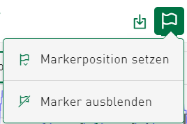 Die Marker bleiben beim Zoomen an der gewählten Position, bis sie ausgeblendet werden. Wenn ein Marker außerhalb des aktuell gezeigten Zeitbereich platziert ist, deutet ein transparenter Pfeil an in welcher Richtung der Marker positioniert ist.