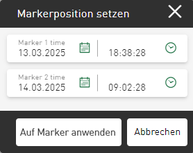 und wählen Sie Markerposition setzen.Ein Eingabedialog zeigt die aktuelle Zeitposition der beiden Marker.